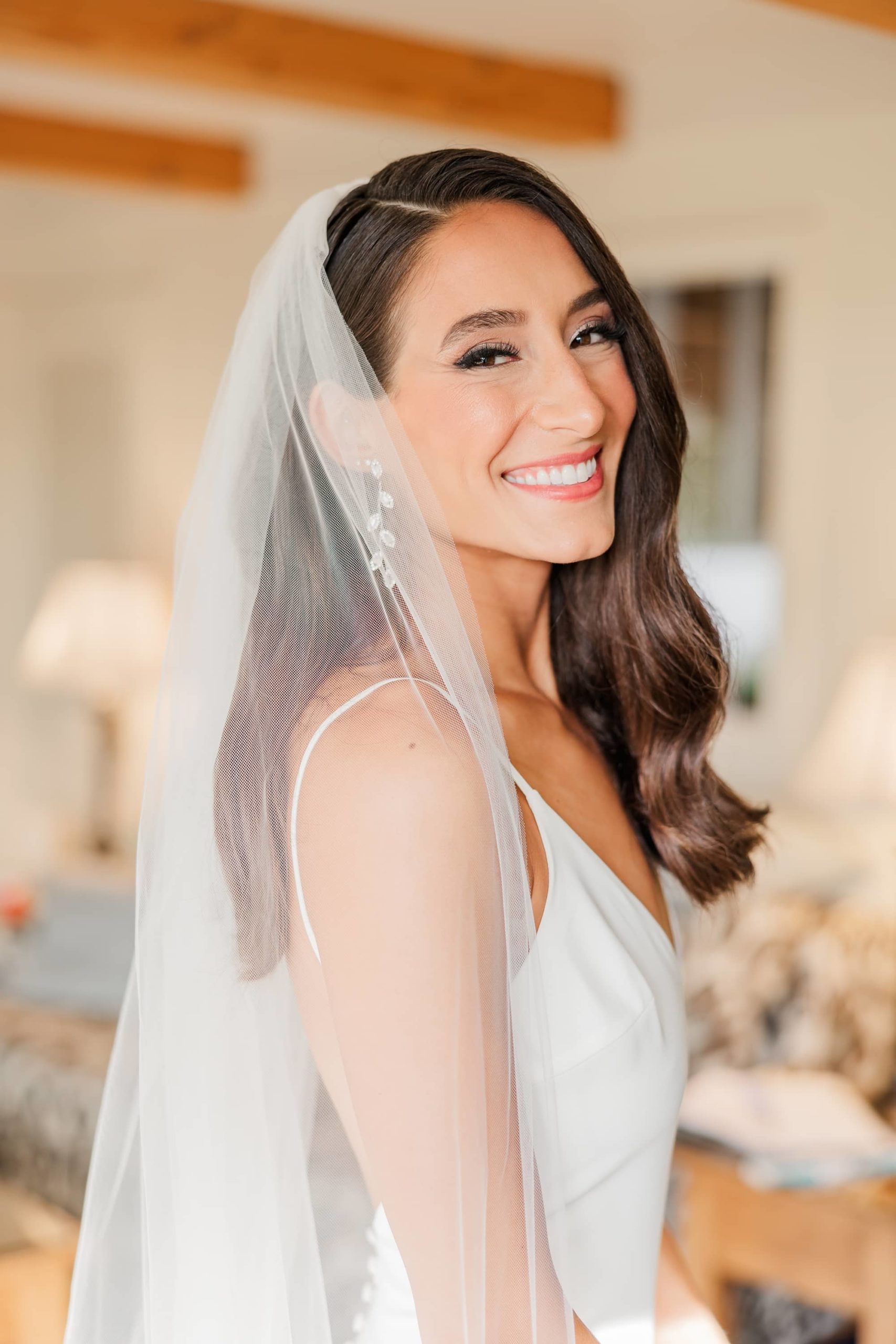 Breanna was the most stunning bride. She is a casual person that loves to dress up. Wanting to stay true to herself, she knew a “simple” dress with one fabric was something she could look back on and be happy about. When Breanna asked Patrick what he thought she would wear his response was “something simple knowing you”. He nailed it. Though the dress was simple, it was absolutely gorgeous. She also wanted to dress it up with the Hollywood glam curls and detailed cathedral veil.